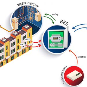 Dostarczane w ramach BES komponenty umożliwiają utrzymanie komfortu cieplnego i optymalizację zużycia energii cieplnej, uwzględniając m.in. dane o parametrach pracy węzła cieplnego, warunki pogodowe oraz inne dane pomiarowe. Pomiar temperatury wykonywany jest w obiektach odbioru energii cieplnej (mieszkania, lokale, klatki schodowe), jak i na zewnątrz budynków, a następnie bezprzewodowo przesyłany do szafy sterowniczej BES. Na bazie wszystkich zebranych danych, system podejmuje decyzje o optymalnym wysterowaniu elementów wykonawczych węzła cieplnego. BES może współpracować z węzłami zasilanymi przez czynnik dostarczany z miejskiej sieci ciepłowniczej lub jednostkę grzewczą obiektu, np. kocioł gazowy. Wszelkie informacje o mierzonych, przetwarzanych i dostarczanych sygnałach mogą być przekazywane, przechowywane i obrazowane w dowolnym systemie SCADA. Rozwiązanie jest produktem innowacyjnym, niezawodnym, spełniającym oczekiwania w zakresie optymalnego dostarczania energii cieplnej, przy jednoczesnej optymalizacji kosztów jej wytworzenia.
