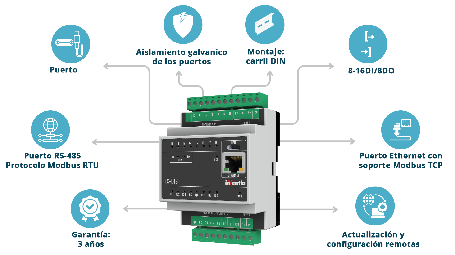 Una de las mayores ventajas del EX-D16 es su fácil integración con los sistemas existentes. Gracias a la compatibilidad con los protocolos de comunicación más populares y a la posibilidad de trabajar con diferentes tipos de controladores y dispositivos maestros, la implementación no requiere conocimientos especializados ni costosos cambios en la infraestructura.